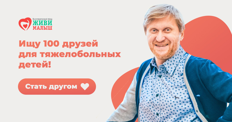 «Уже много лет я поддерживаю благотворительный фонд «Живи, малыш», который каждый день борется за благополучие детей с ДЦП. И мы решили запустить замечательную акцию «100 друзей». В чем суть? Я ищу 100 человек, кто вместе со мной подключит ежемесячный автоплатеж в пользу фонда.