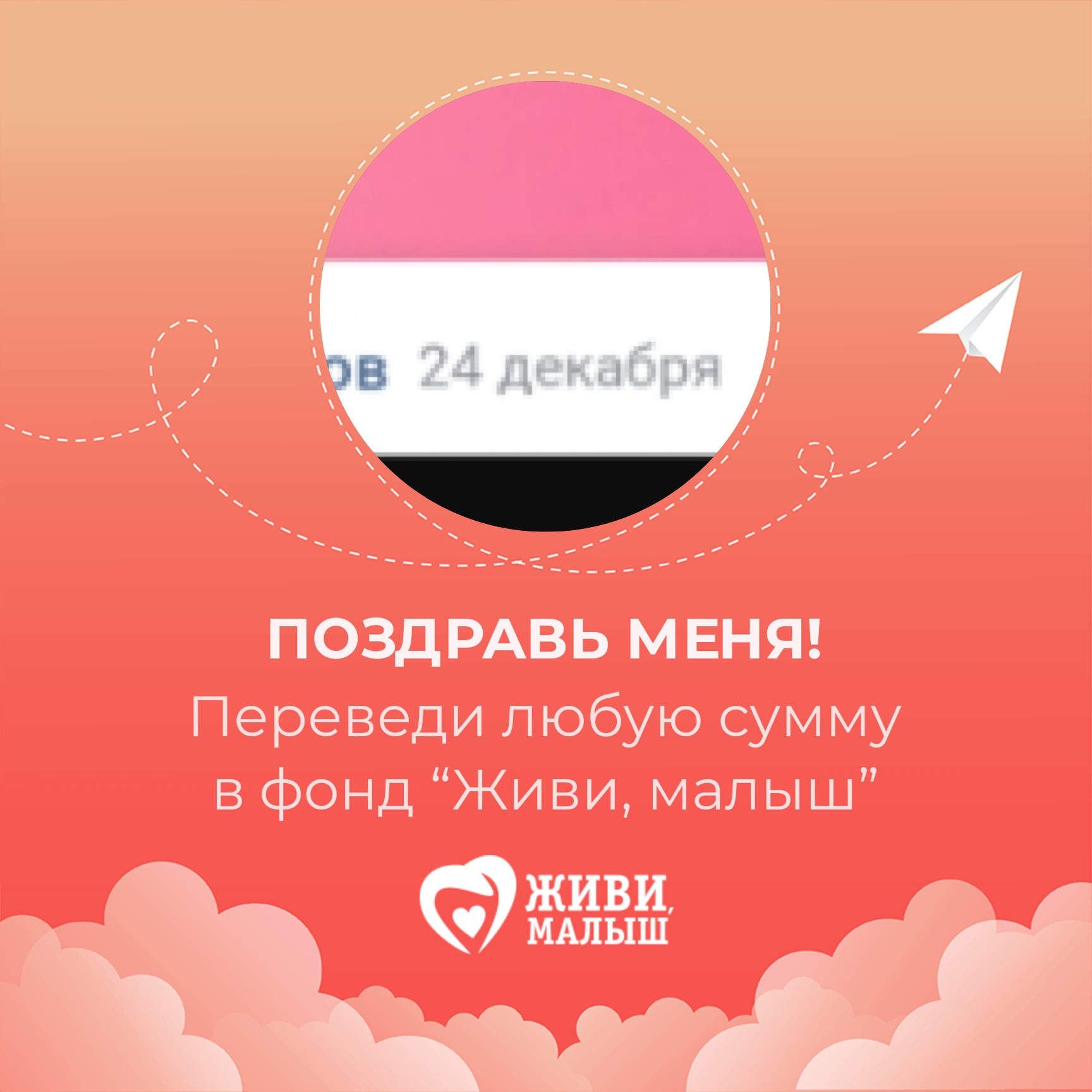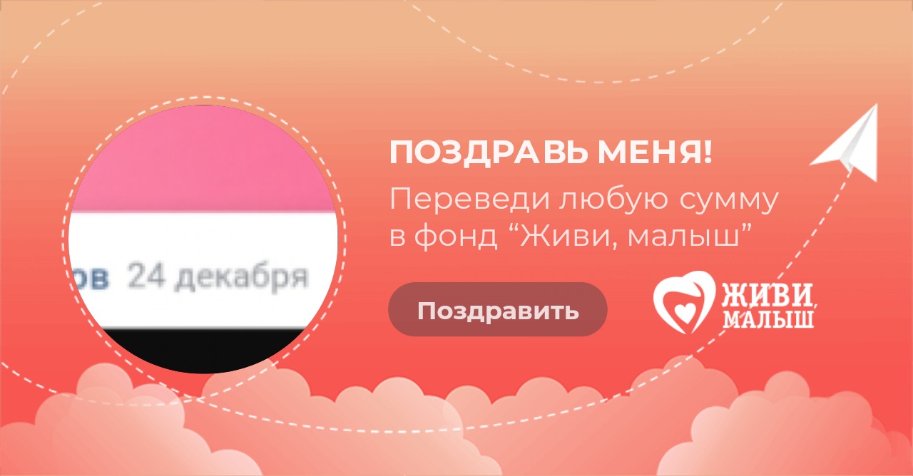 В свой день рождения я прошу вас помочь фонду “Живи, малыш”. Фонд занимается оплатой лечения и реабилитации детей, развивает службу бесплатного такси для детей инвалидов, обеспечивает расходными материалами детей с паллиативным статусом. Переведите любую сумму в фонд - это будет для меня лучшим поздравлением сегодня.