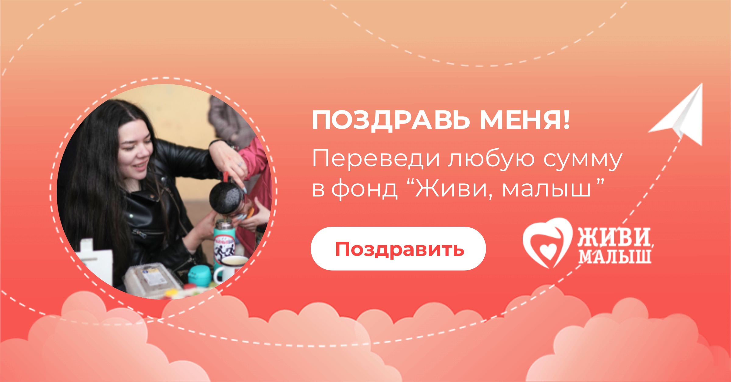 В свой день рождения я прошу вас помочь фонду “Живи, малыш”. Фонд занимается оплатой лечения и реабилитации детей, развивает службу бесплатного такси для детей инвалидов, обеспечивает расходными материалами детей с паллиативным статусом. Переведите любую сумму в фонд - это будет для меня лучшим поздравлением сегодня.