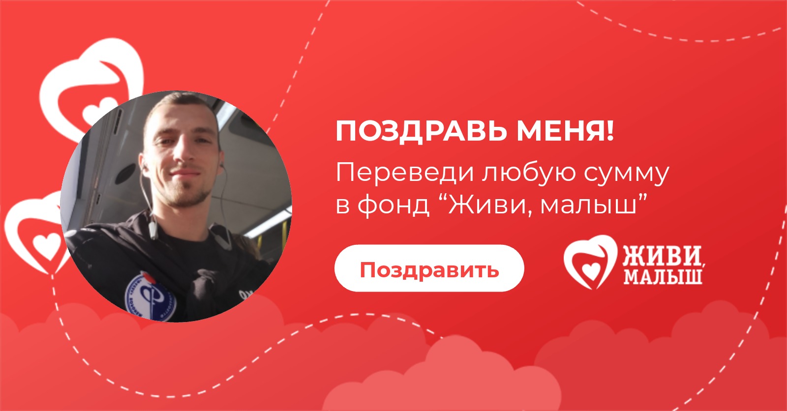 В свой день рождения я прошу вас помочь фонду “Живи, малыш”. Фонд занимается оплатой лечения и реабилитации детей, развивает службу бесплатного такси для детей инвалидов, обеспечивает расходными материалами детей с паллиативным статусом. Переведите любую сумму в фонд - это будет для меня лучшим поздравлением сегодня.