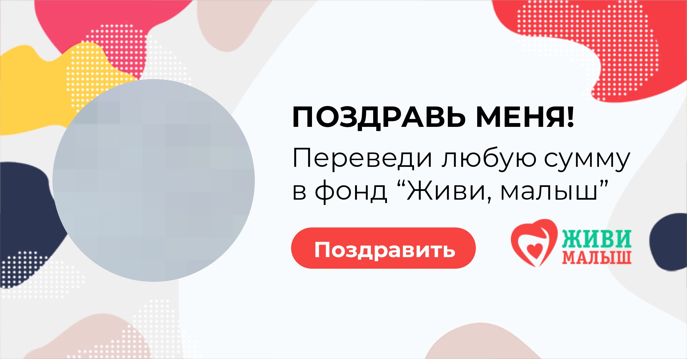 В свой день рождения я прошу вас помочь фонду “Живи, малыш”. Фонд занимается оплатой лечения и реабилитации детей, развивает службу бесплатного такси для детей инвалидов, обеспечивает расходными материалами детей с паллиативным статусом. Переведите любую сумму в фонд - это будет для меня лучшим поздравлением сегодня.