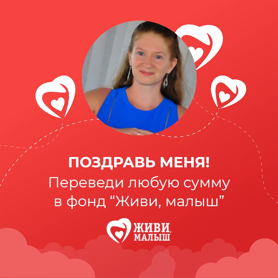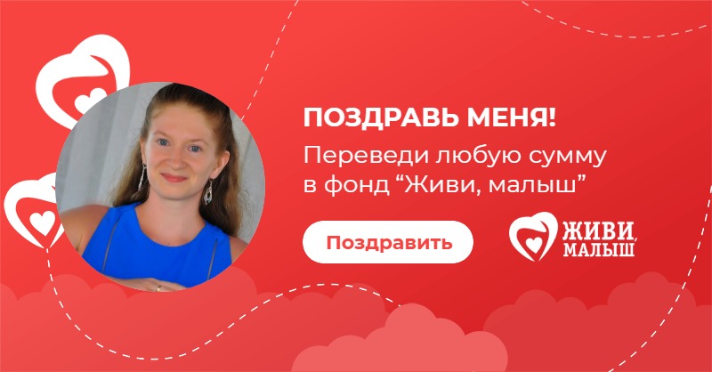 В свой день рождения я прошу вас помочь фонду “Живи, малыш”. Фонд занимается оплатой лечения и реабилитации детей, развивает службу бесплатного такси для детей инвалидов, обеспечивает расходными материалами детей с паллиативным статусом. Переведите любую сумму в фонд - это будет для меня лучшим поздравлением сегодня.
