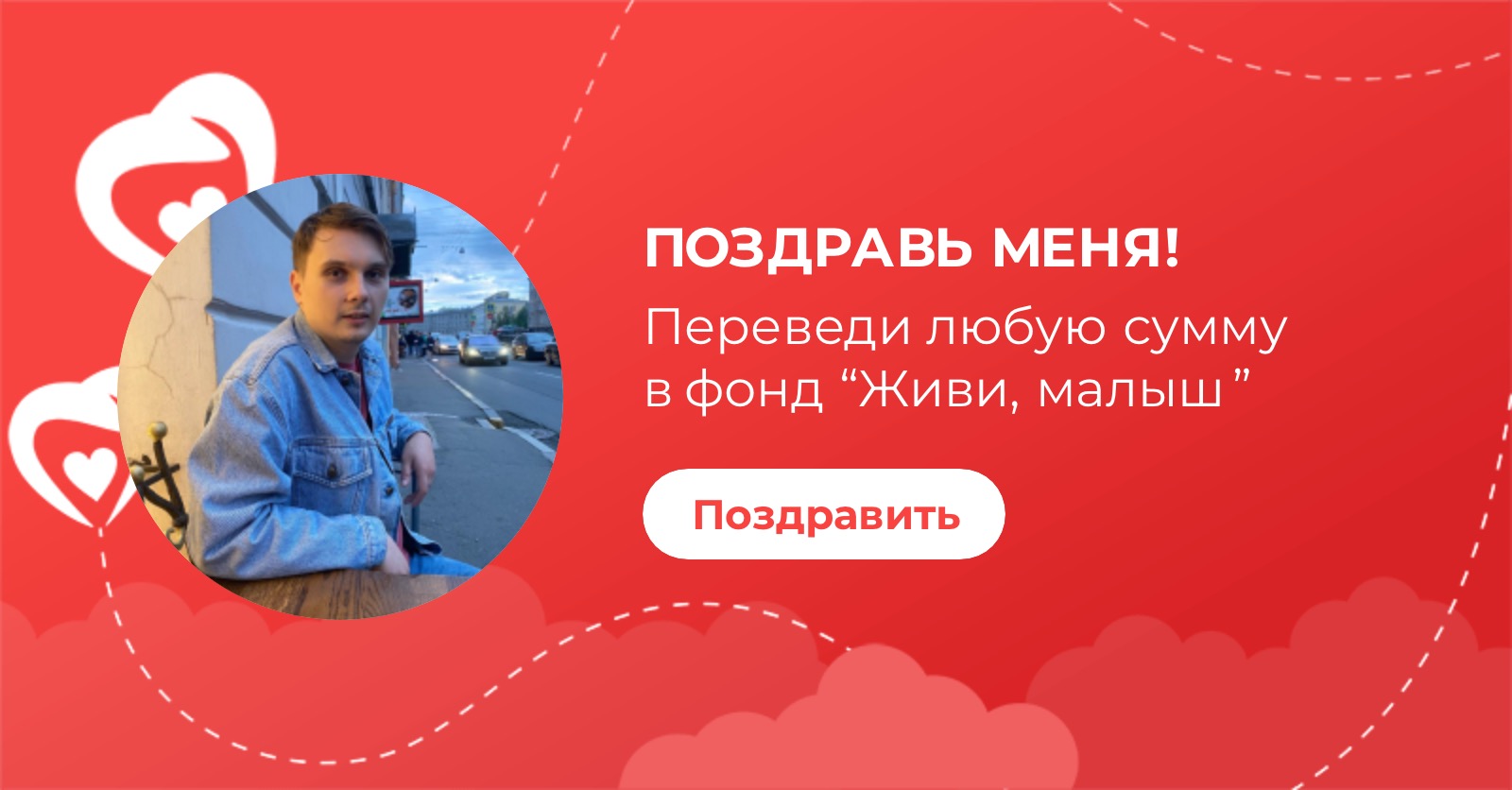 В свой день рождения я прошу вас помочь фонду “Живи, малыш”. Фонд занимается оплатой лечения и реабилитации детей, развивает службу бесплатного такси для детей инвалидов, обеспечивает расходными материалами детей с паллиативным статусом. Переведите любую сумму в фонд - это будет для меня лучшим поздравлением сегодня.