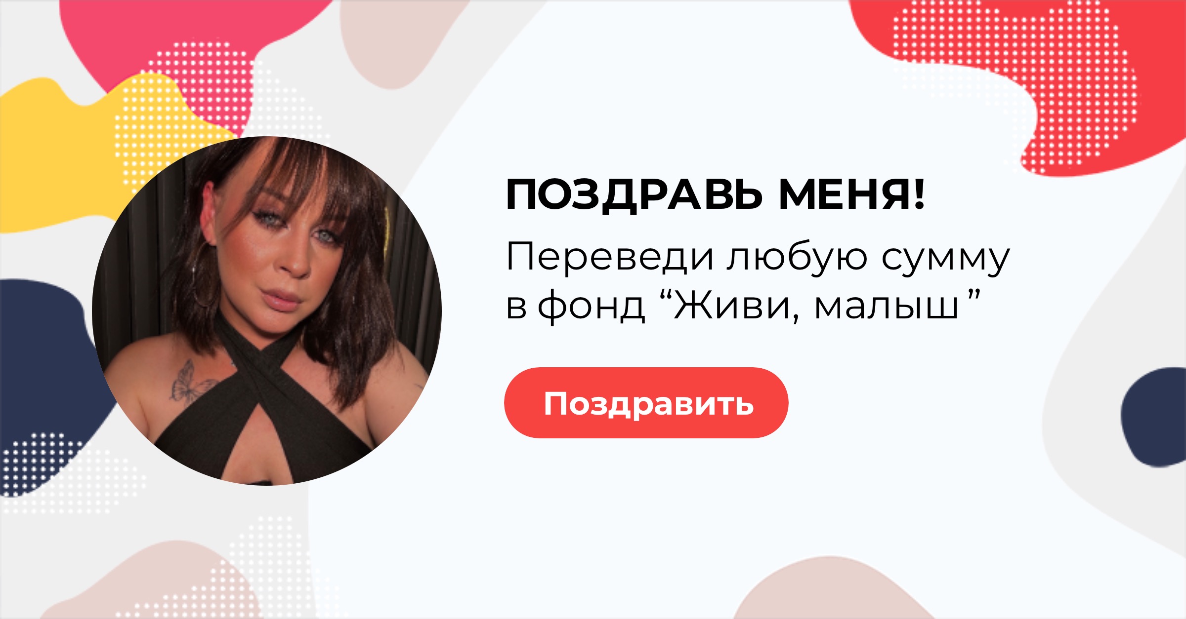В свой день рождения я прошу вас помочь фонду “Живи, малыш”. Фонд занимается оплатой лечения и реабилитации детей, развивает службу бесплатного такси для детей инвалидов, обеспечивает расходными материалами детей с паллиативным статусом. Переведите любую сумму в фонд - это будет для меня лучшим поздравлением сегодня.