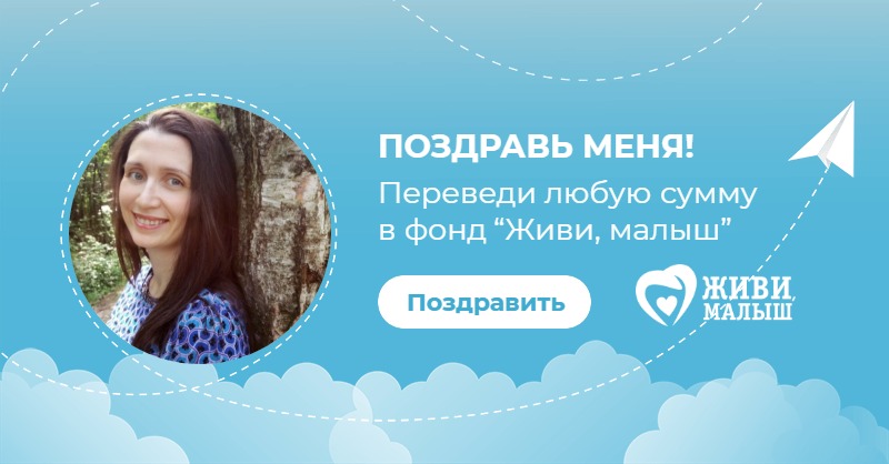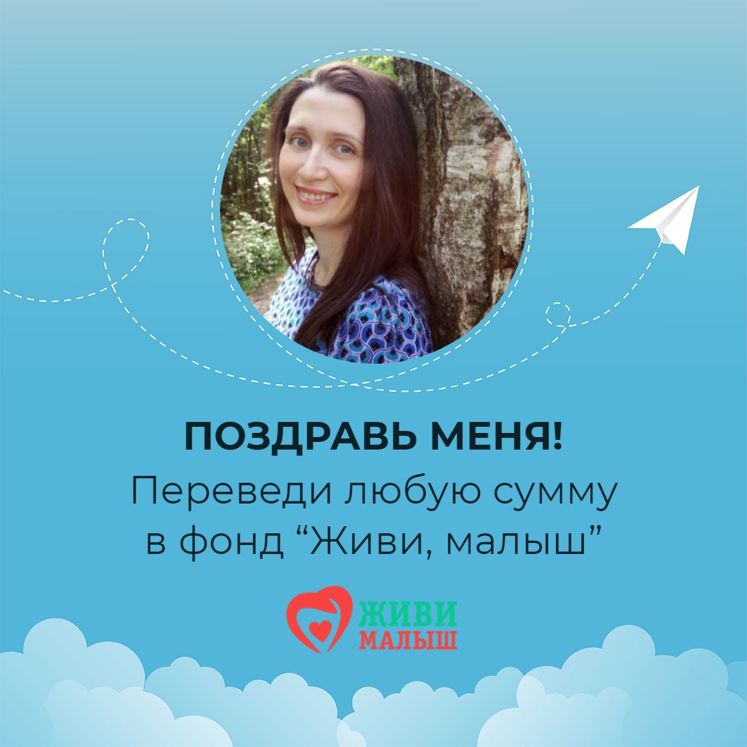 В свой день рождения я прошу вас помочь фонду “Живи, малыш”. Фонд занимается оплатой лечения и реабилитации детей, развивает службу бесплатного такси для детей инвалидов, обеспечивает расходными материалами детей с паллиативным статусом. Переведите любую сумму в фонд - это будет для меня лучшим поздравлением сегодня.