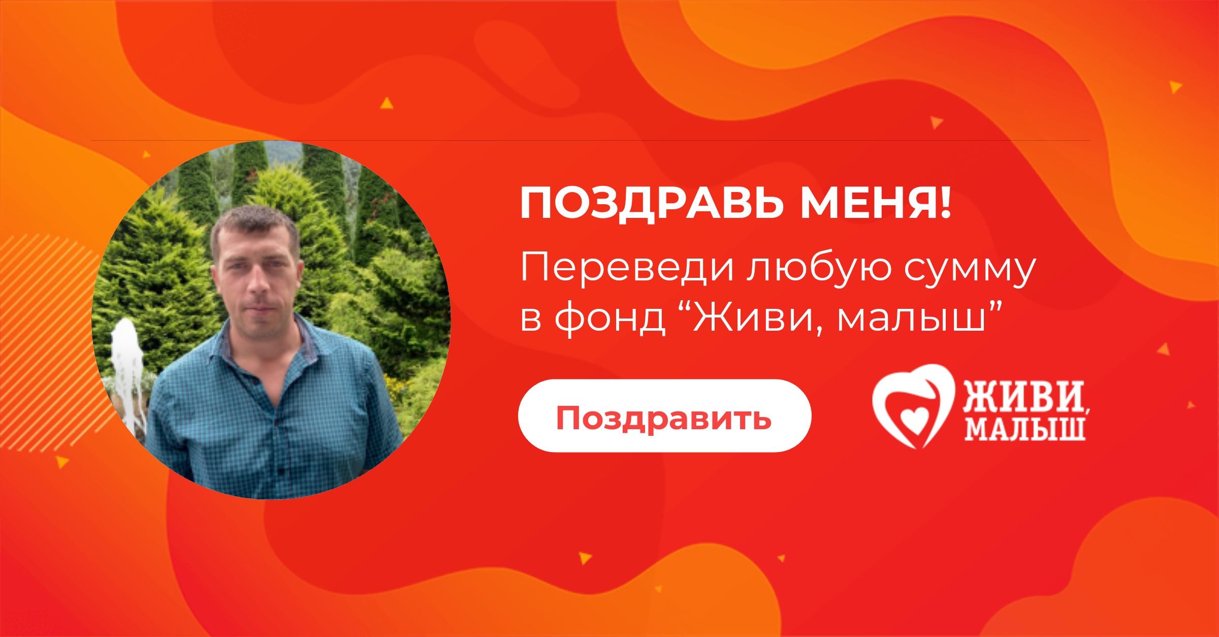 В свой день рождения я прошу вас помочь фонду “Живи, малыш”. Фонд занимается оплатой лечения и реабилитации детей, развивает службу бесплатного такси для детей инвалидов, обеспечивает расходными материалами детей с паллиативным статусом. Переведите любую сумму в фонд - это будет для меня лучшим поздравлением сегодня.