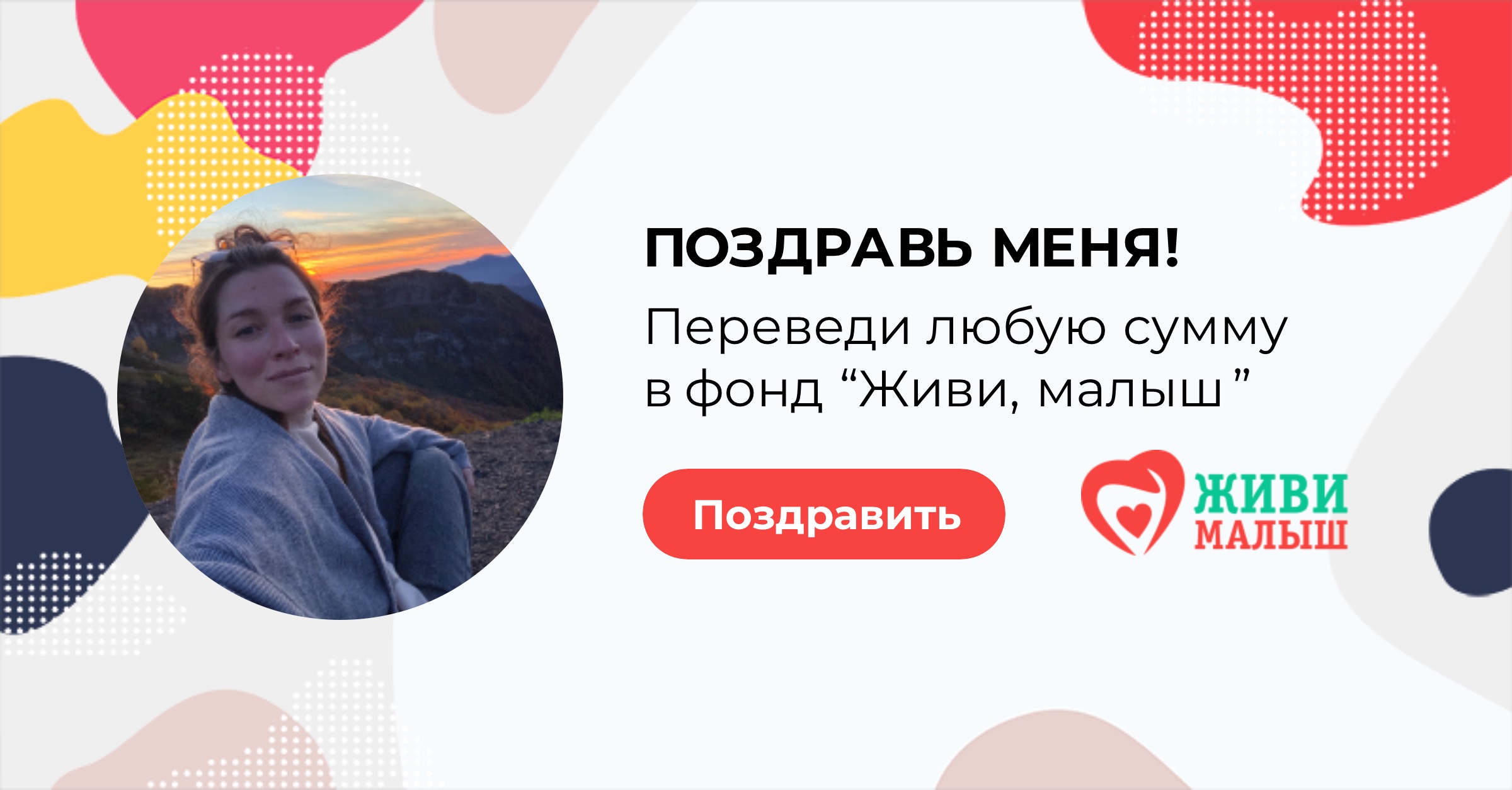 В свой день рождения я прошу вас помочь фонду “Живи, малыш”. Фонд занимается оплатой лечения и реабилитации детей, развивает службу бесплатного такси для детей инвалидов, обеспечивает расходными материалами детей с паллиативным статусом. Переведите любую сумму в фонд - это будет для меня лучшим поздравлением сегодня.