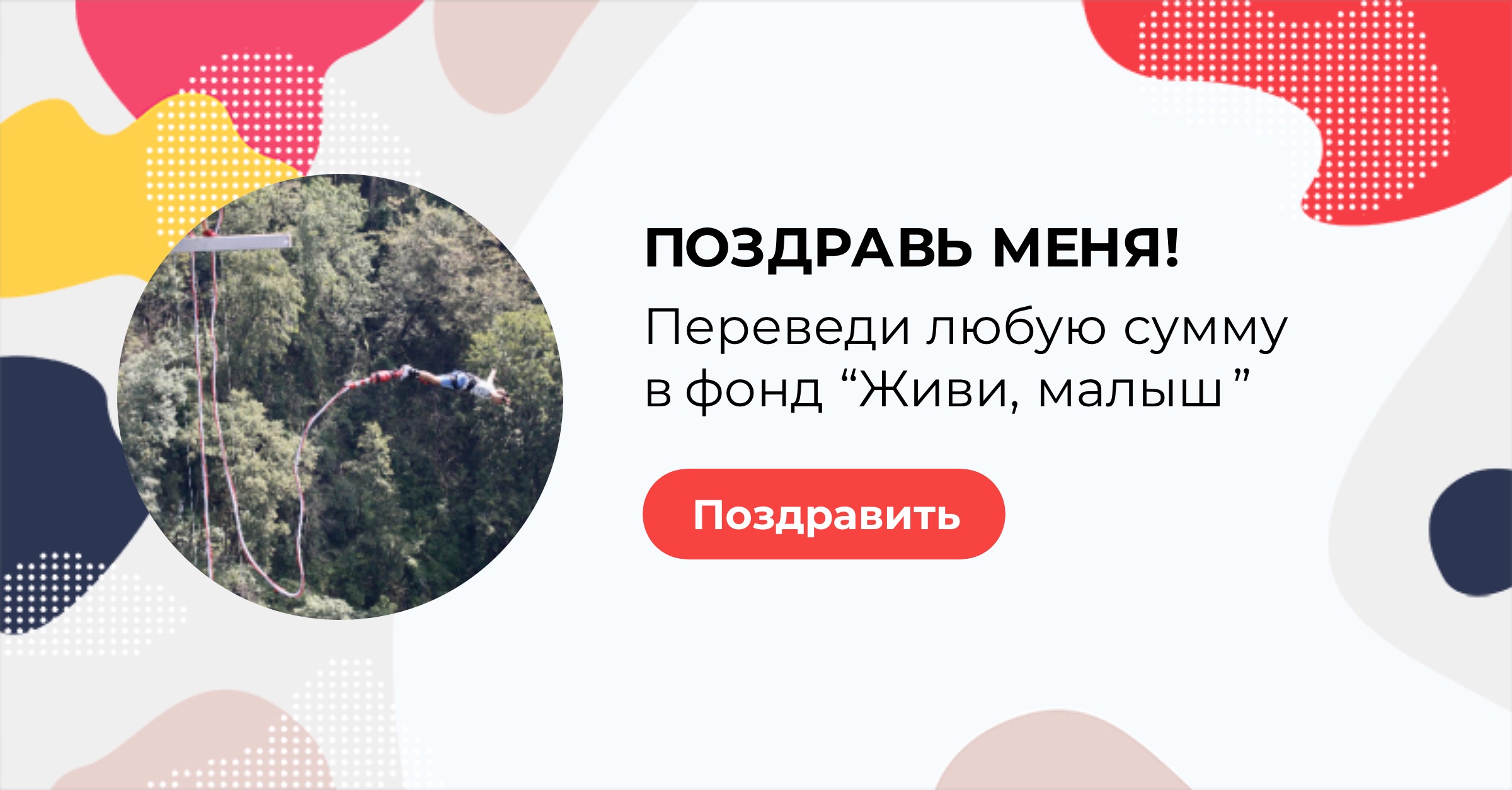 В свой день рождения я прошу вас помочь фонду “Живи, малыш”. Фонд занимается оплатой лечения и реабилитации детей, развивает службу бесплатного такси для детей инвалидов, обеспечивает расходными материалами детей с паллиативным статусом. Переведите любую сумму в фонд - это будет для меня лучшим поздравлением сегодня.