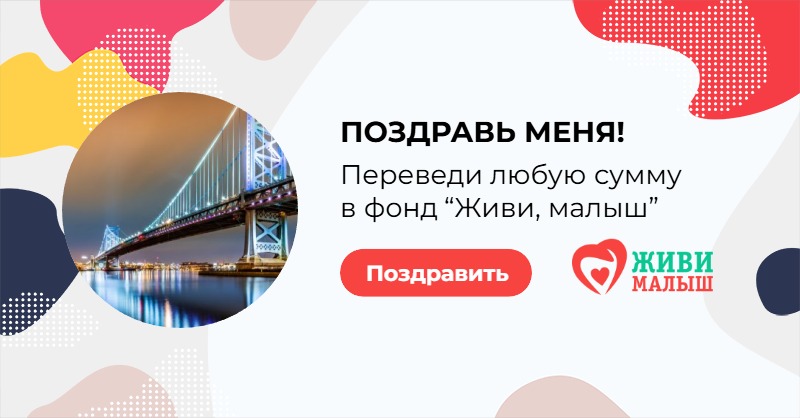 онлайн-сервис “Поздравь меня”, по просьбе именинника будут переданы в фонд “Живи, малыш”