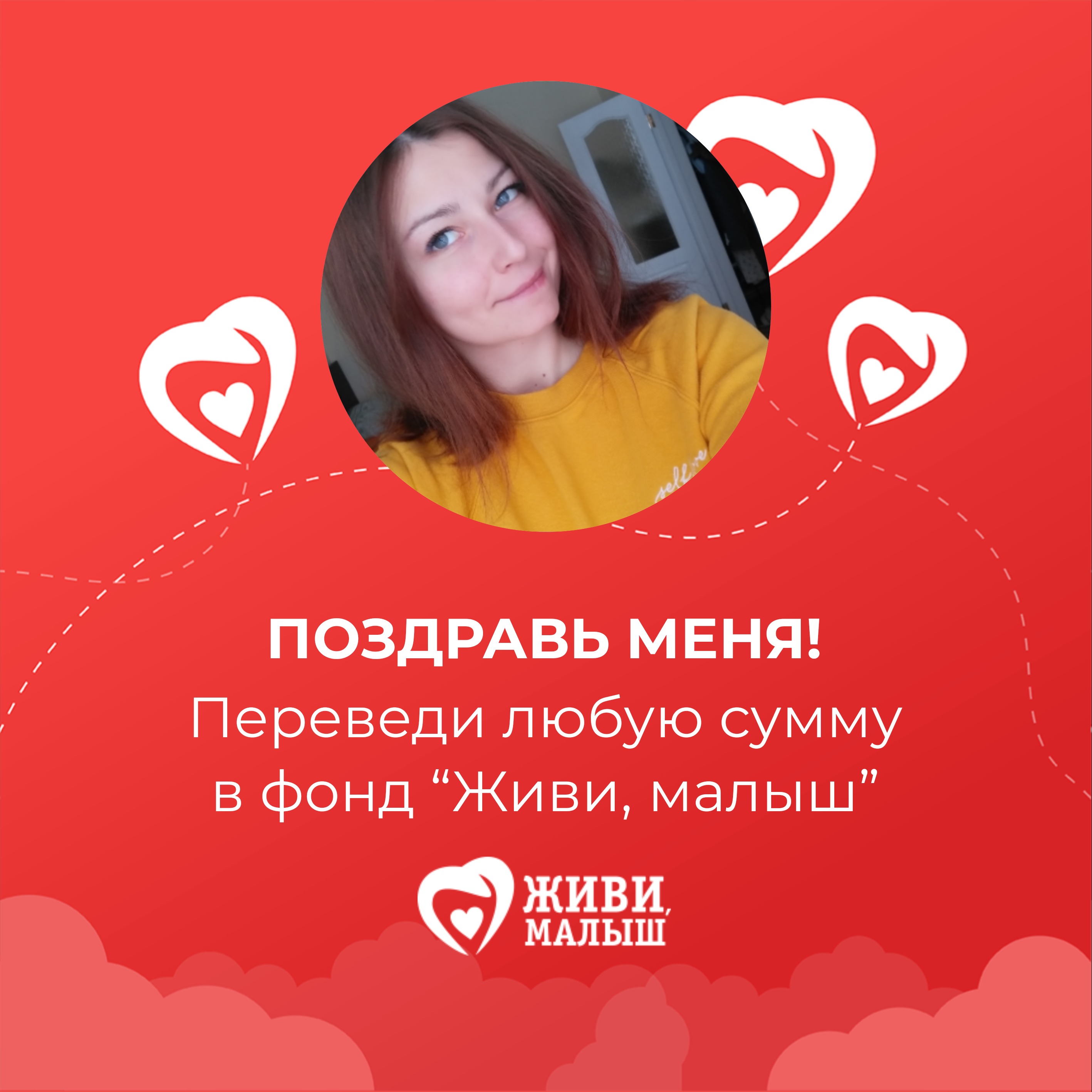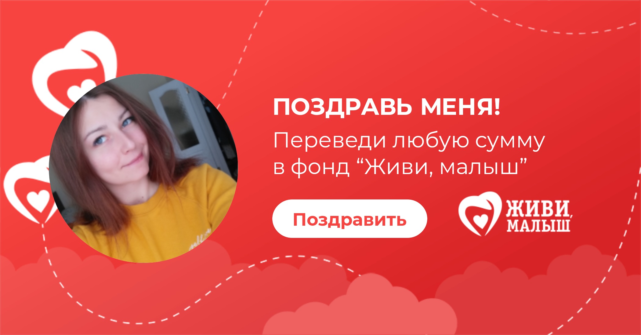 В свой день рождения я прошу вас помочь фонду “Живи, малыш”. Фонд занимается оплатой лечения и реабилитации детей, развивает службу бесплатного такси для детей инвалидов, обеспечивает расходными материалами детей с паллиативным статусом. Переведите любую сумму в фонд - это будет для меня лучшим поздравлением сегодня.