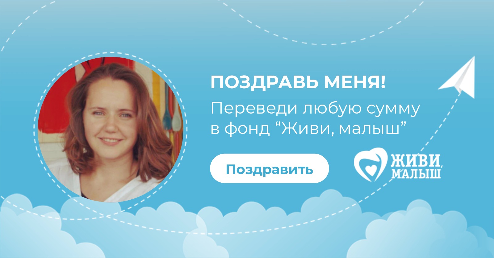 В свой день рождения я прошу вас помочь фонду “Живи, малыш”. Фонд занимается оплатой лечения и реабилитации детей, развивает службу бесплатного такси для детей инвалидов, обеспечивает расходными материалами детей с паллиативным статусом. Переведите любую сумму в фонд - это будет для меня лучшим поздравлением сегодня.