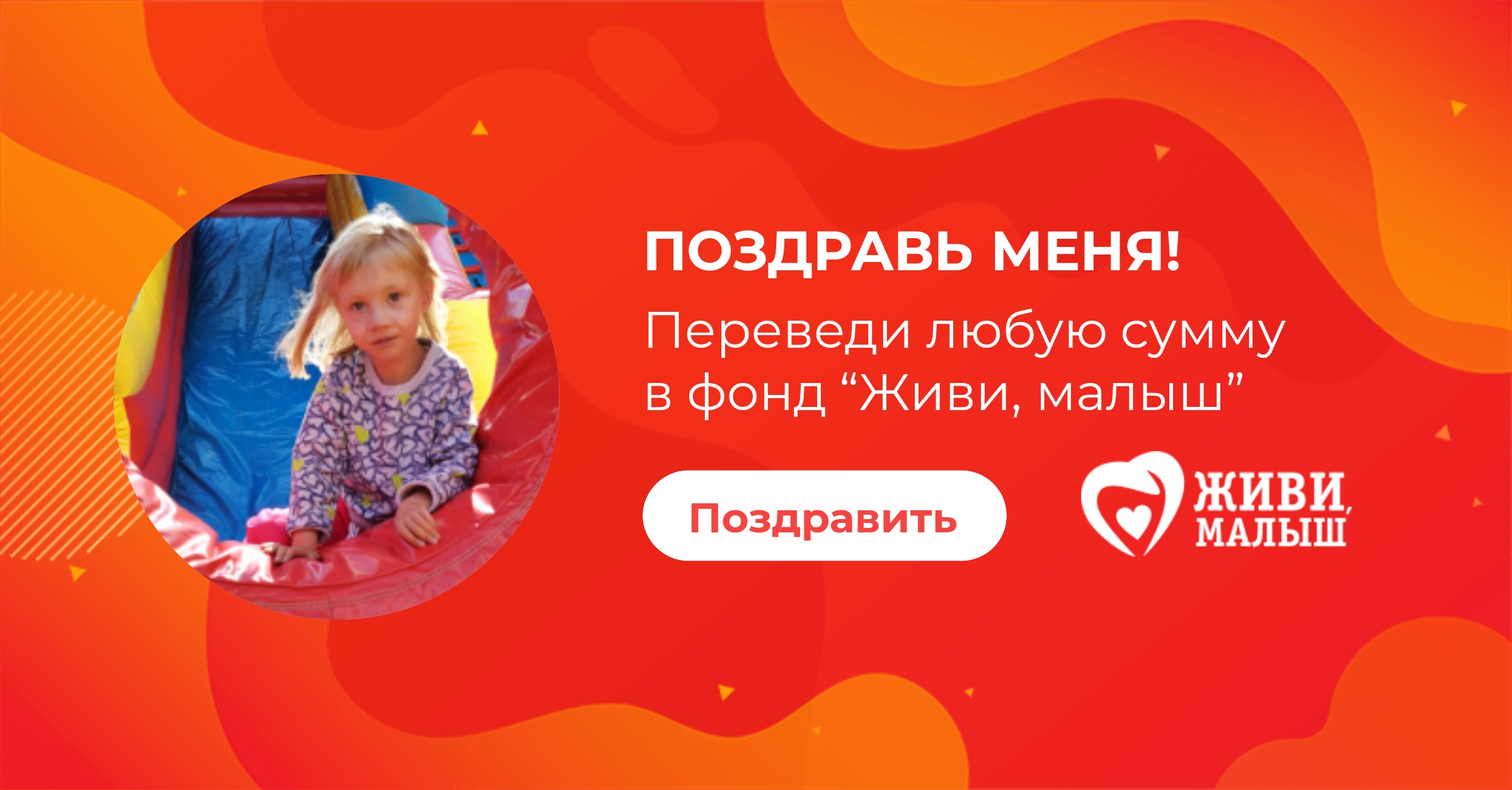 В свой день рождения я прошу вас помочь фонду “Живи, малыш”. Фонд занимается оплатой лечения и реабилитации детей, развивает службу бесплатного такси для детей инвалидов.