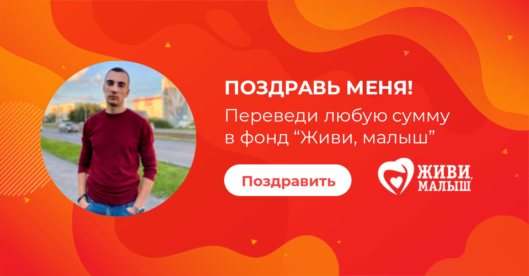 В свой день рождения я прошу вас помочь фонду “Живи, малыш”. Фонд занимается оплатой лечения и реабилитации детей, развивает службу бесплатного такси для детей инвалидов, обеспечивает расходными материалами детей с паллиативным статусом. Переведите любую сумму в фонд - это будет для меня лучшим поздравлением сегодня.