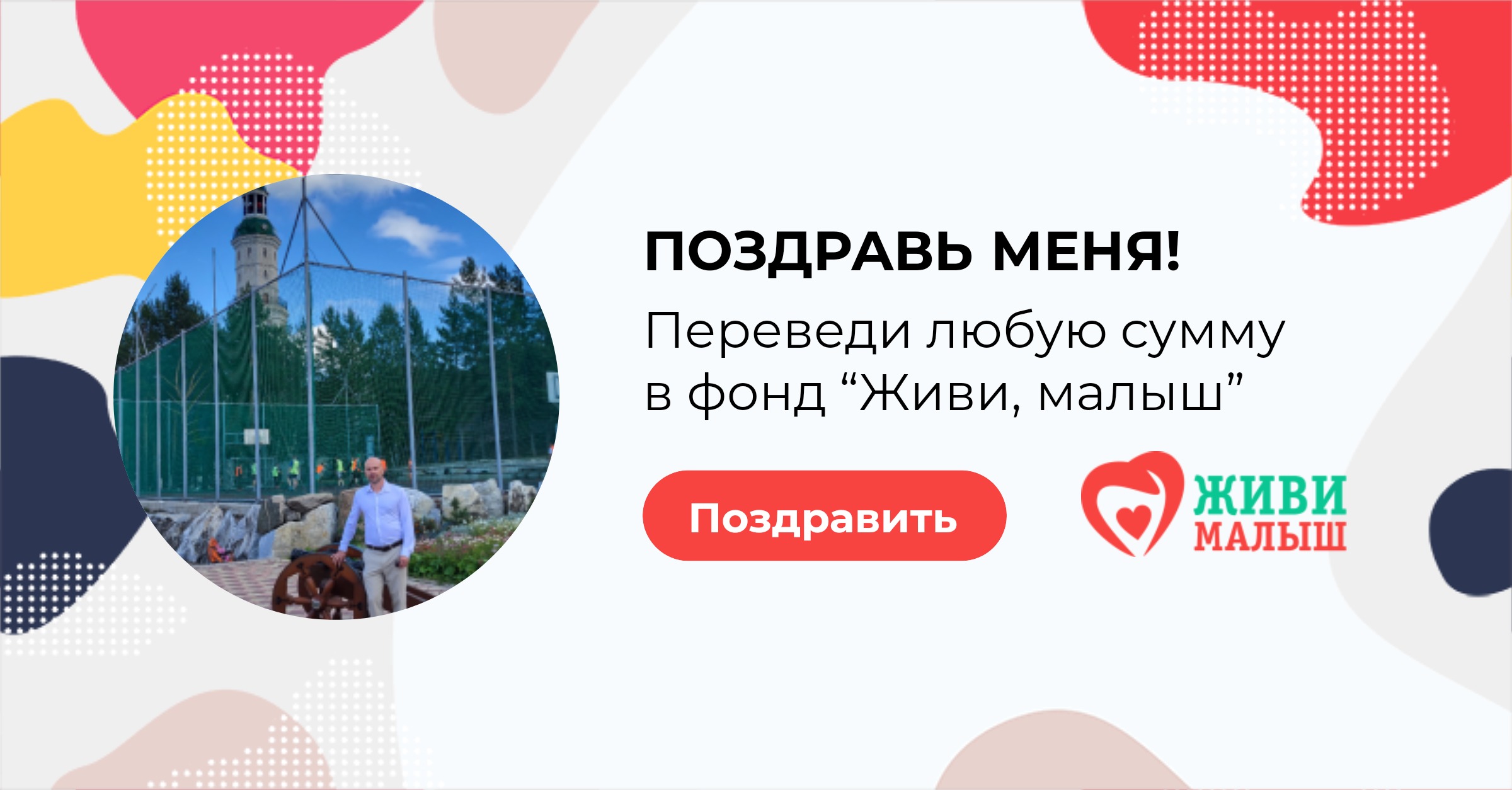 В свой день рождения я прошу вас помочь фонду “Живи, малыш”. Фонд занимается оплатой лечения и реабилитации детей, развивает службу бесплатного такси для детей инвалидов, обеспечивает расходными материалами детей с паллиативным статусом. Переведите любую сумму в фонд - это будет для меня лучшим поздравлением сегодня.