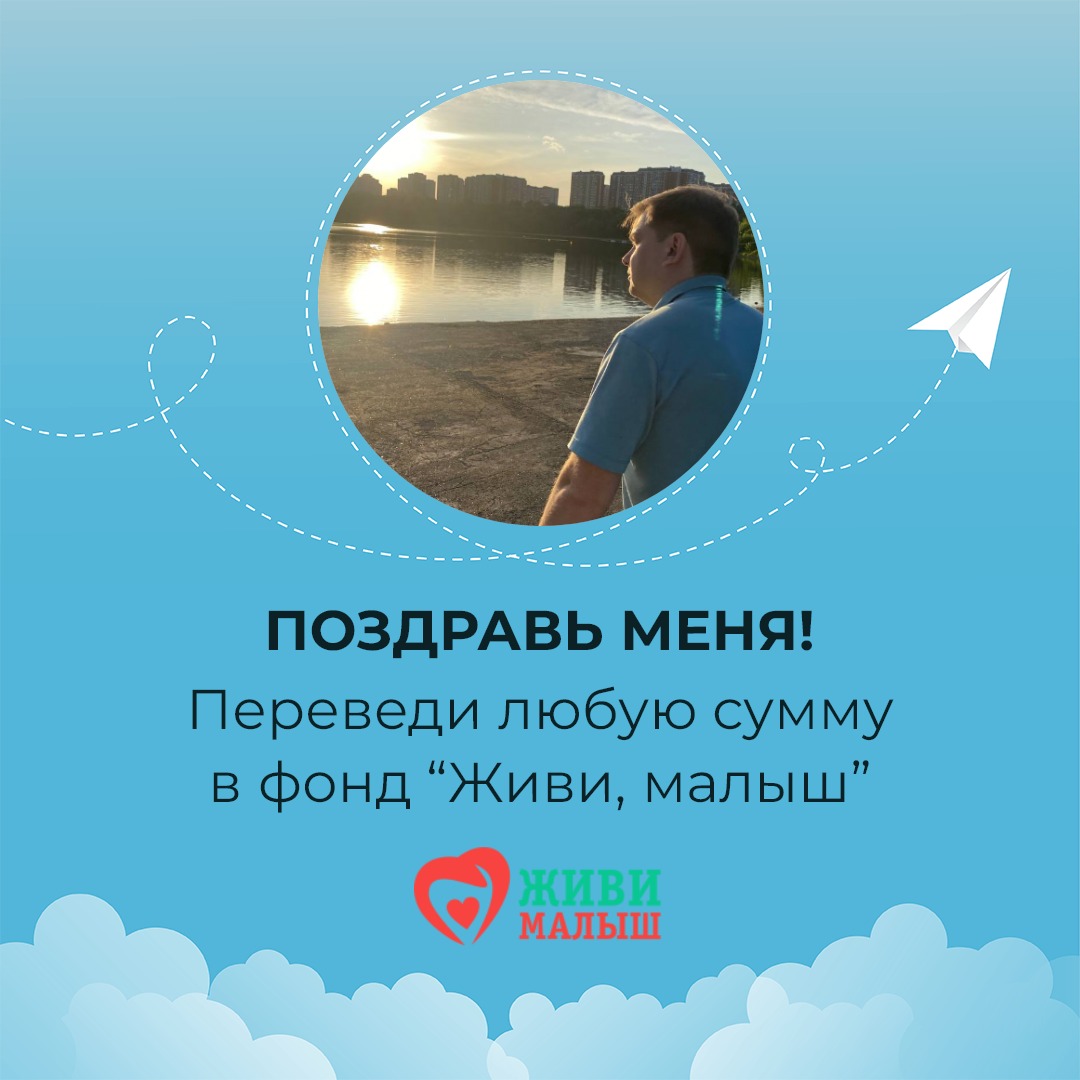 В свой день рождения я прошу вас помочь фонду “Живи, малыш”. Фонд занимается оплатой лечения и реабилитации детей, развивает службу бесплатного такси для детей инвалидов, обеспечивает расходными материалами детей с паллиативным статусом. Основателя фонда Егора знаю лично - замечательный человек, болеющий за правое дело! Переведите любую сумму в фонд - это будет для меня лучшим поздравлением сегодня.