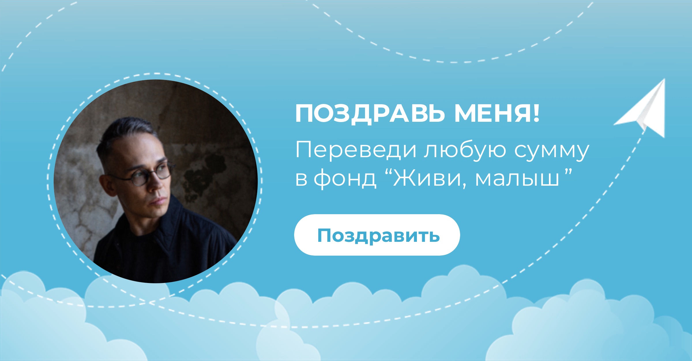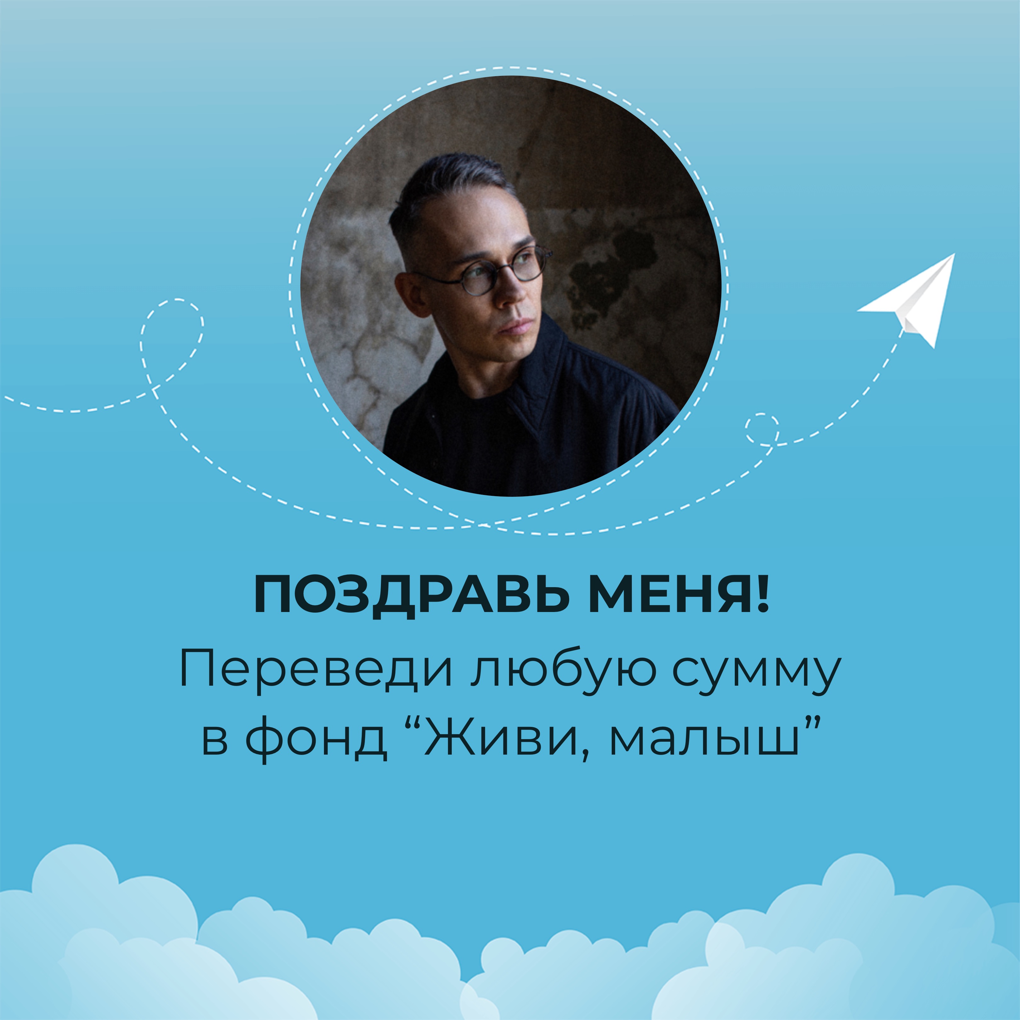 В свой день рождения я прошу вас помочь фонду “Живи, малыш”. Фонд занимается оплатой лечения и реабилитации детей, развивает службу бесплатного такси для детей инвалидов, обеспечивает расходными материалами детей с паллиативным статусом. Переведите любую сумму в фонд - это будет для меня лучшим поздравлением сегодня.