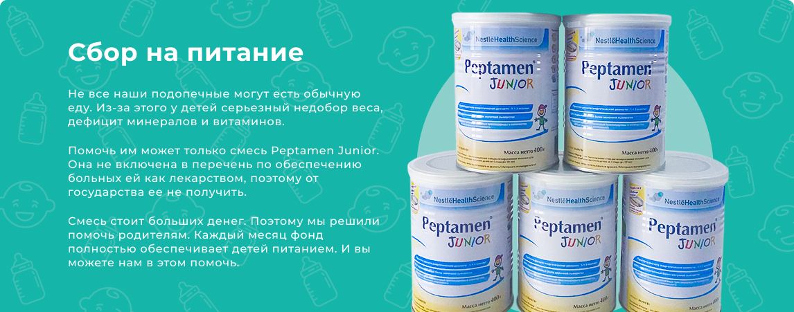 Помочь им может только смесь Peptamen Junior. Она не включена в перечень по обеспечению больных ей как лекарством, поэтому от государства ее не получить.